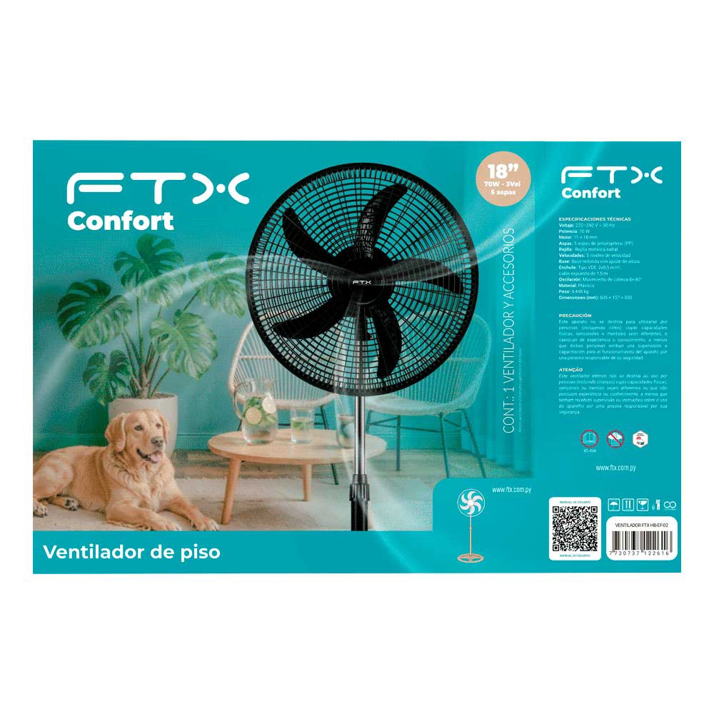 Ventilador De Pie Ftx 3 Vel Confort 70w 220v Plast/Negro Hb-Ef-02